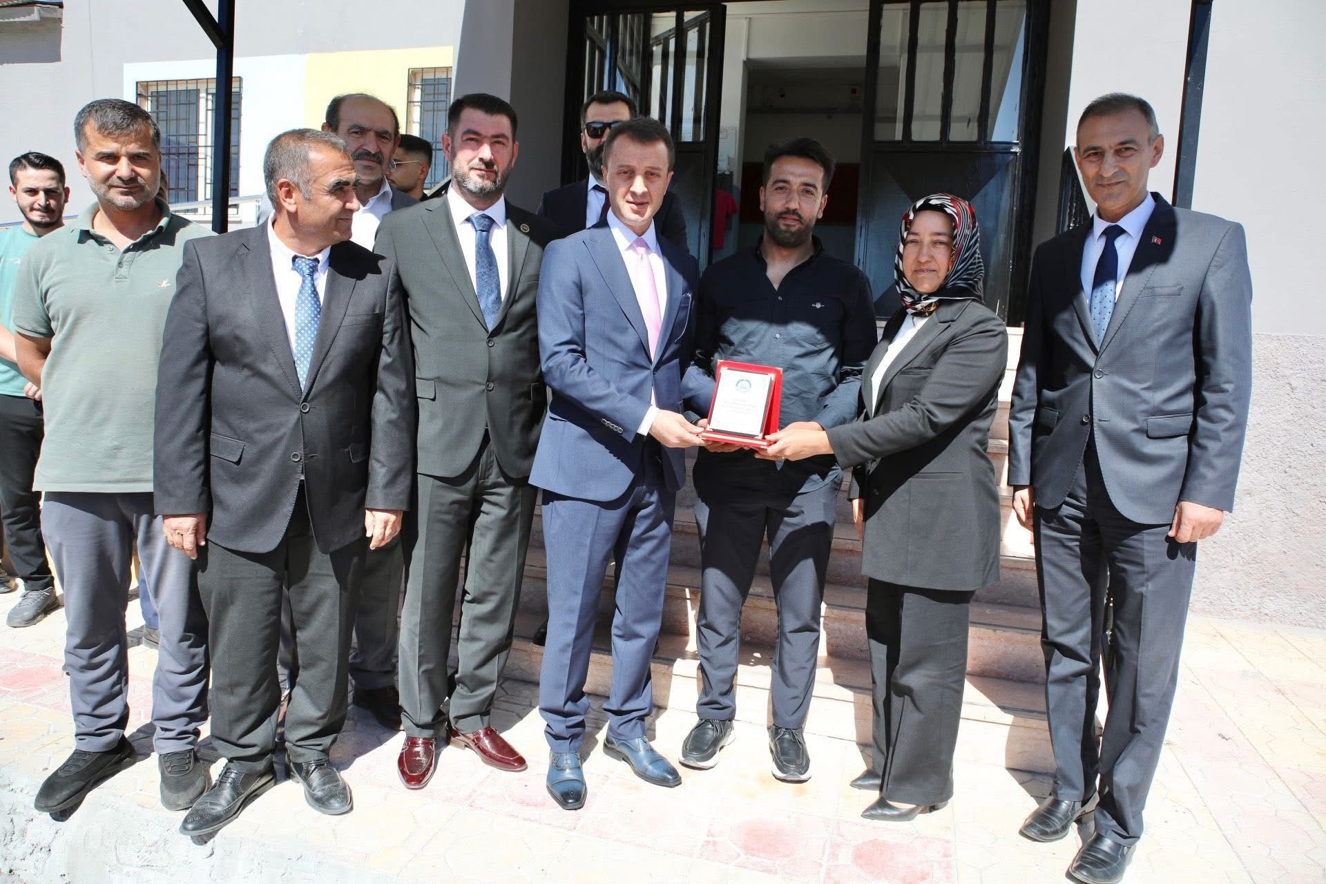 Öğretmen ve öğrencilerimizle bir araya gelen Kaymakamımız Hicabi AYTEMÜR, daha sonra okul tadilatında vermiş olduğu desteklerden dolayı Tatardağ İnşaat Yönetim Kurulu Başkanı İbrahim DAĞ'a teşekkür plaketi takdim etti.