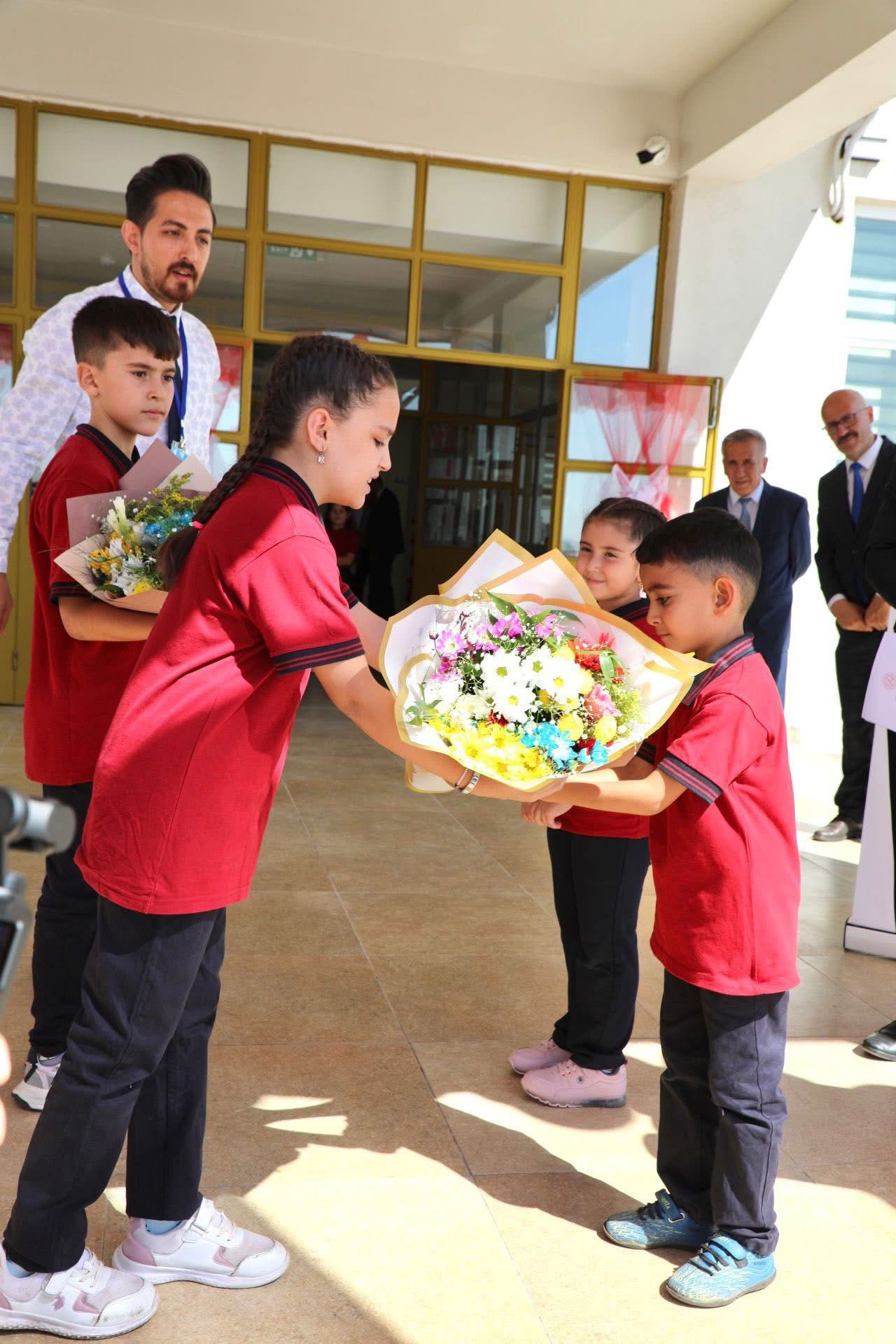 Saygı Duruşu ve İstiklal Marşı'nın okunmasıyla başlayan program, öğrencilerin şiir okumaları ve halk oyunları gösterisiyle devam etti. 4. sınıf öğrencilerinin 1. sınıfa başlayan arkadaşlarına "Hoş Geldin Çiçeği" takdim etmesi ise programa anlamlı bir renk kattı.